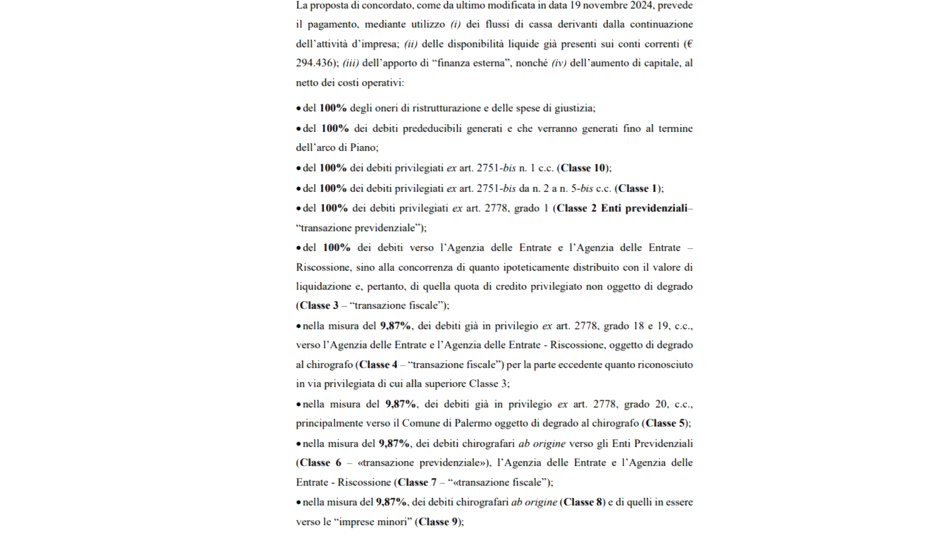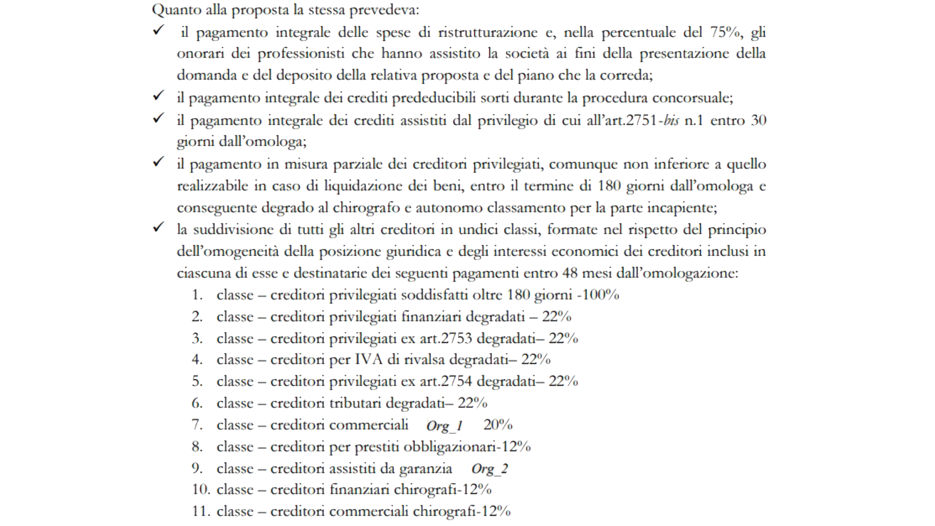 Paradigmatica, ad esempio, è la pronuncia del Tribunale di Palermo del 31 gennaio 2025 che ha omologato una proposta così composta: