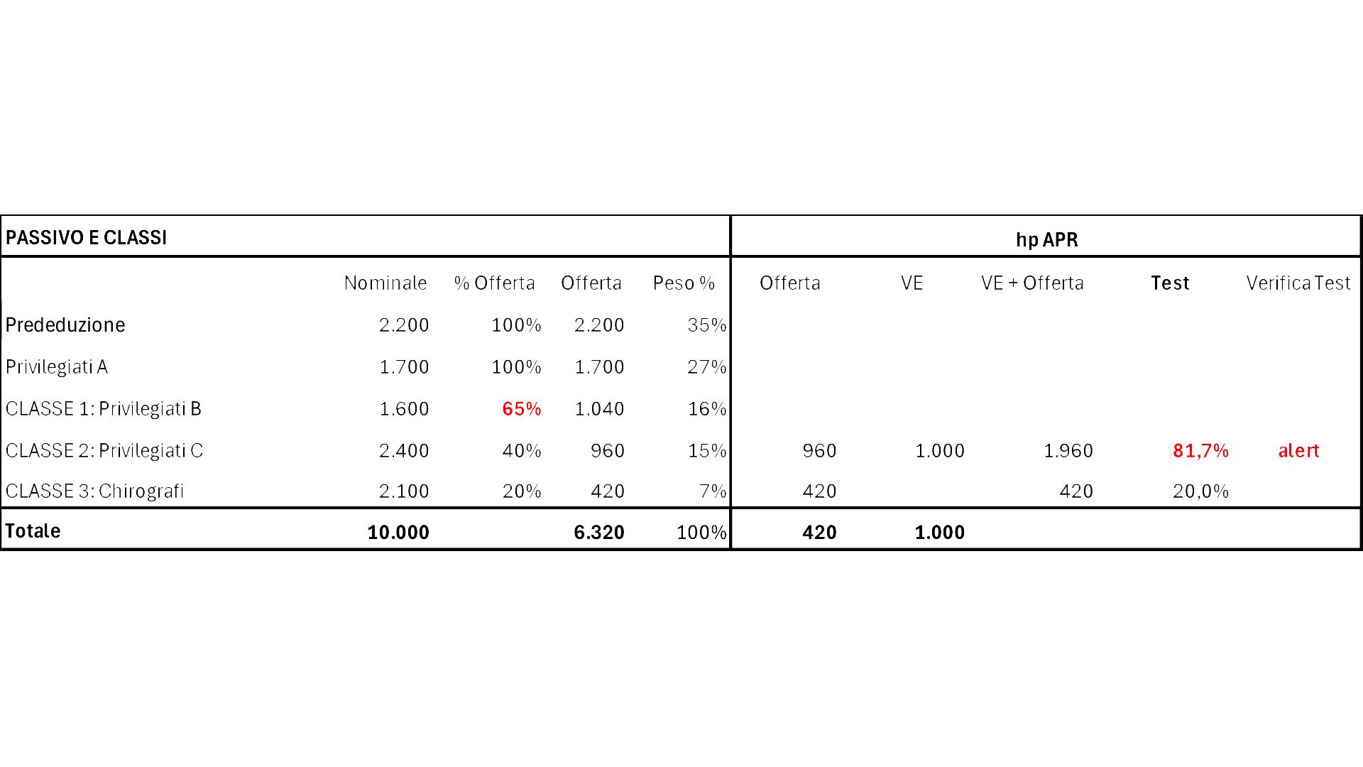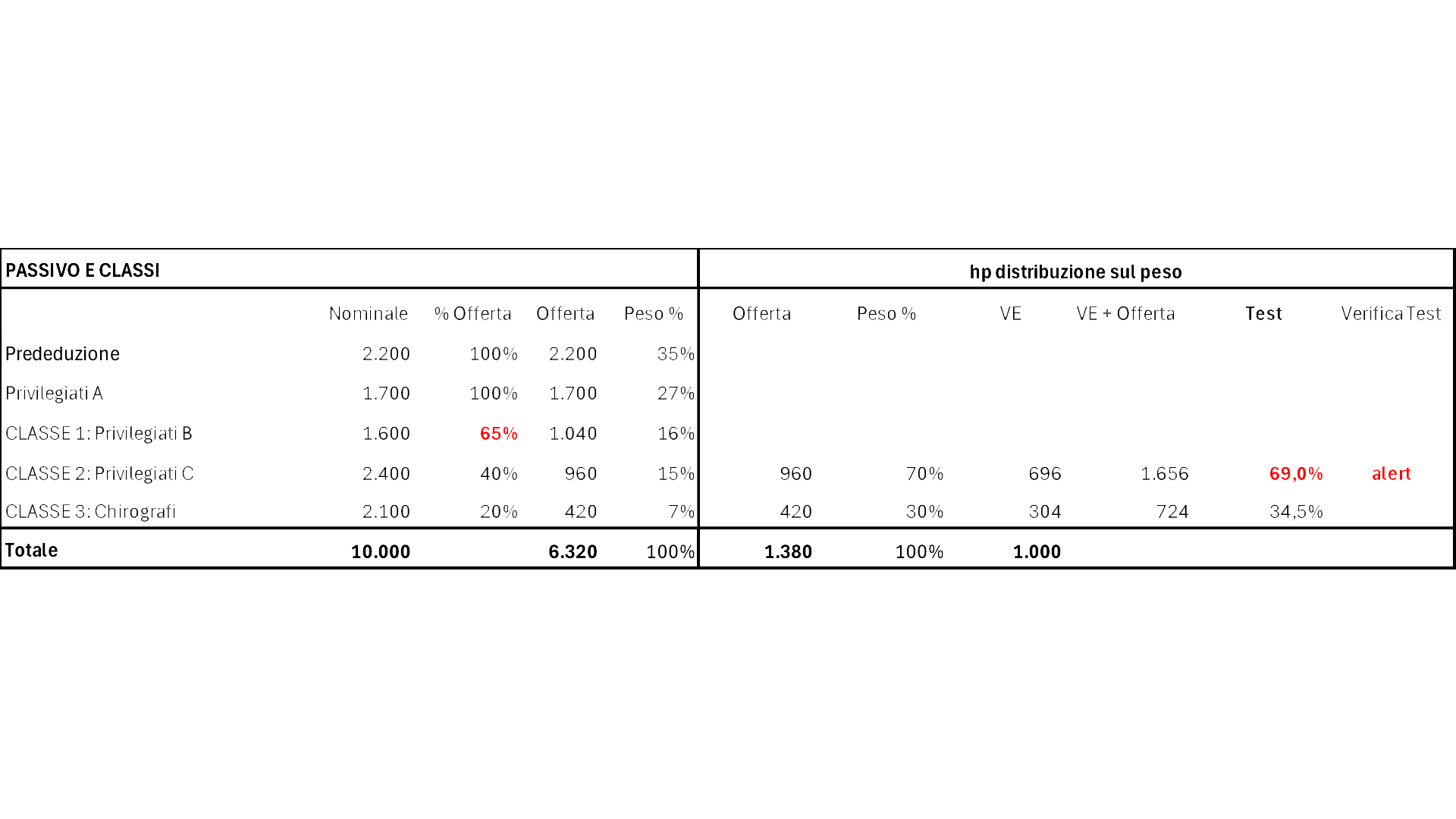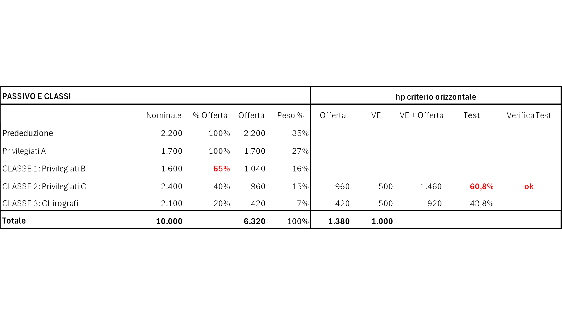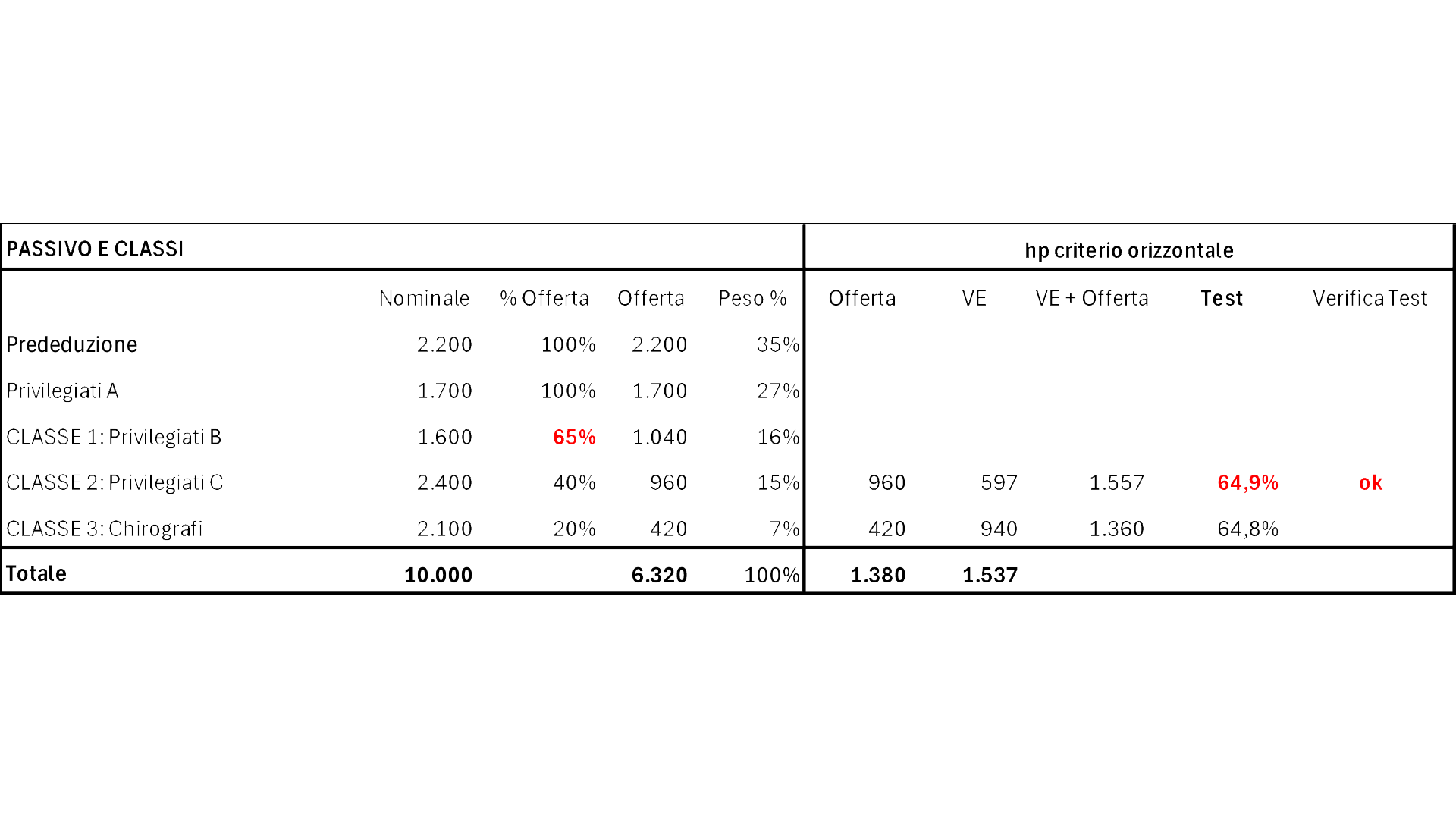 6.2 . Criterio proporzionale per classi (in base al fabbisogno concordatario)