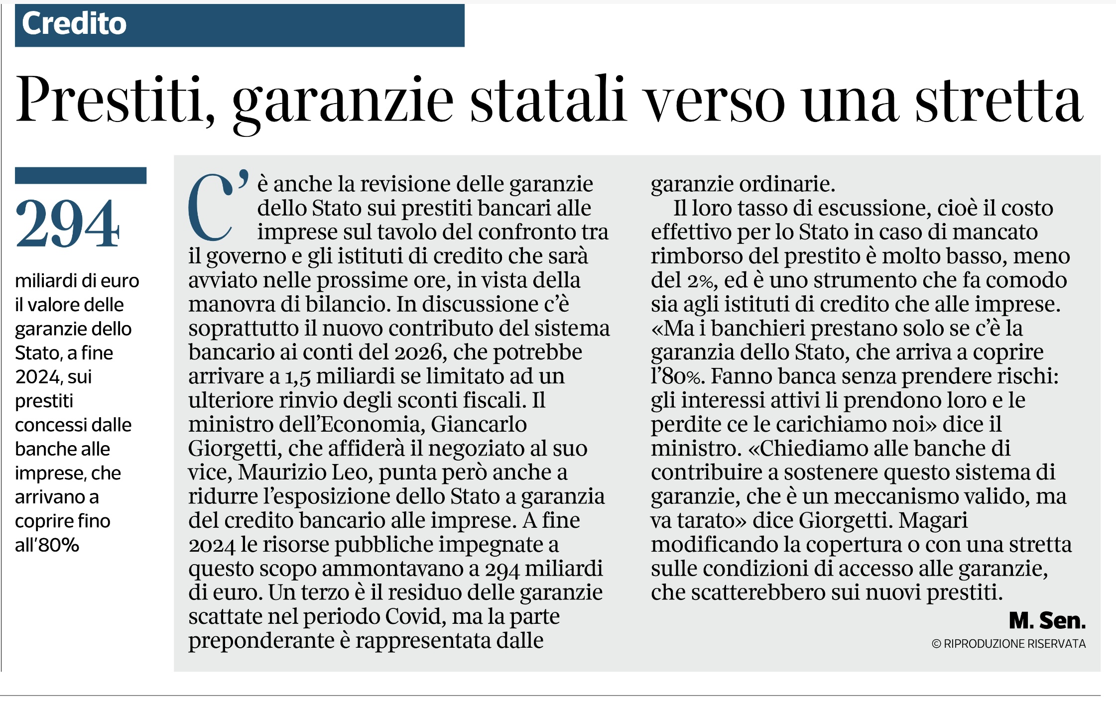 Nell’articolo non v’è traccia di rinunce al regresso da parte degli enti statali garanti, che sarebbero antinomiche rispetto alla preoccupata attenzione del Governo al tema.
