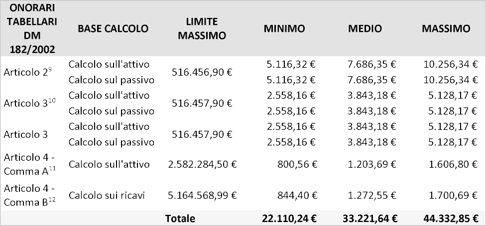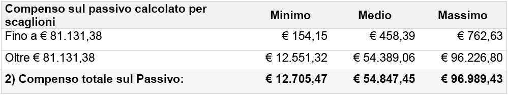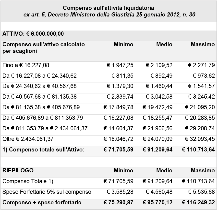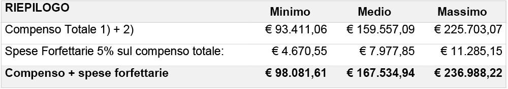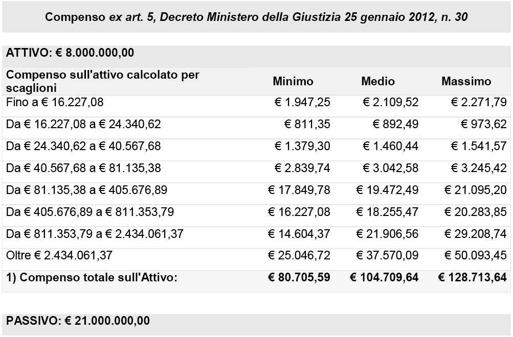 - la stima delle spese di procedura, di gestione e cessione degli attivi, degli interessi passivi ecc.